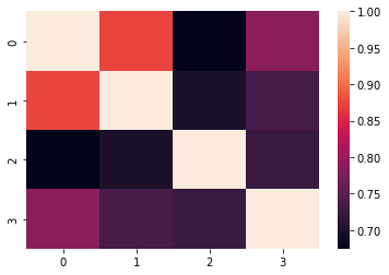 sns.heatmap(pairwise.cosine_similarity(embeddings, embeddings))