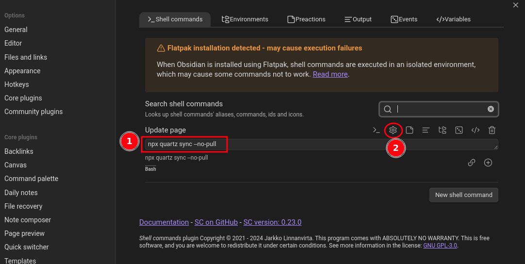 cd "$(git rev-parse --show-toplevel)" && npx quartz sync --no-pullNow running Ctrl + P and typing Update page updates the page directly from obsidian.
